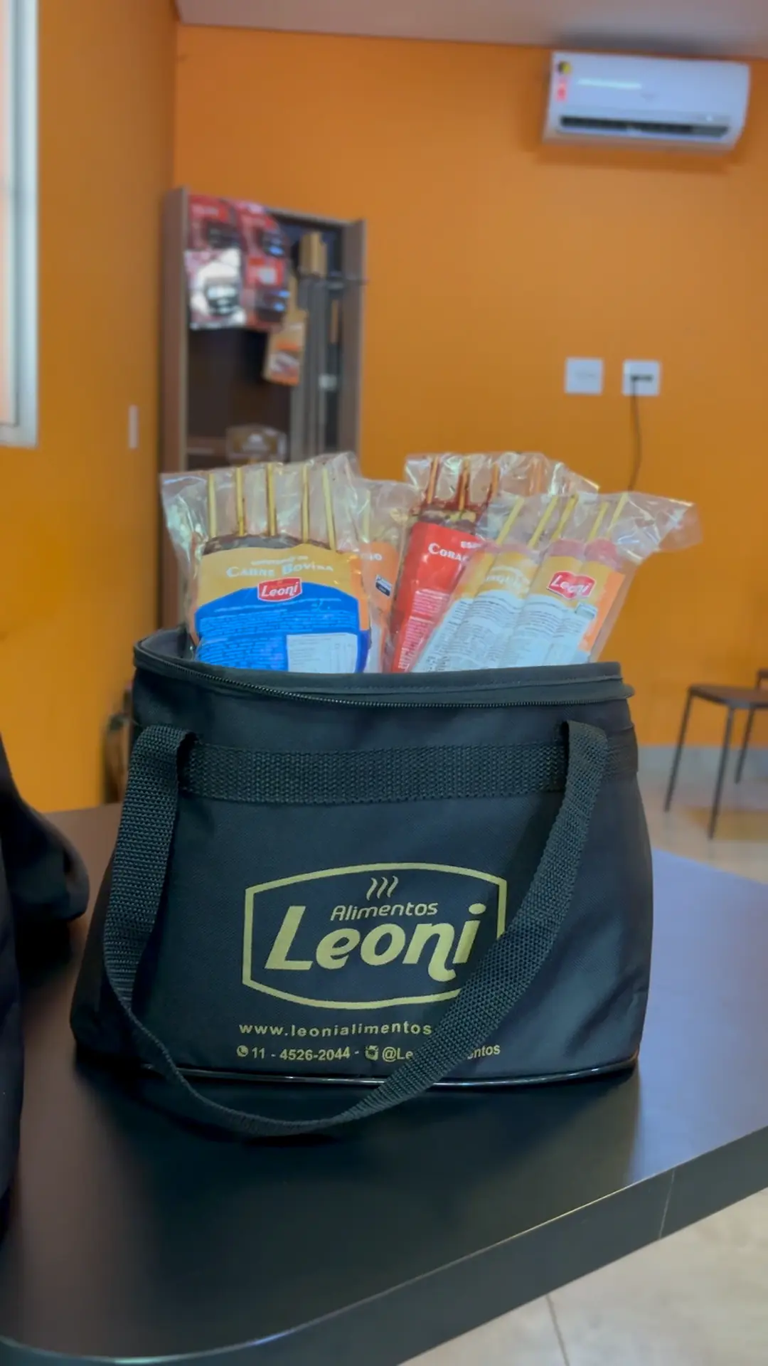 Composição: Espeto Bovino (500g) + Espeto Coração (500g) + Bolsa Térmica